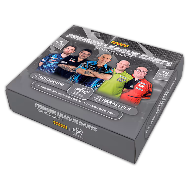 La deuxième sortie darts de Panini est dédiée à la PDC Premier League, le format disputé chaque printemps. Les fans de darts trouveront dans les boîtes 2025 PANINI PDC Premier League Darts Cards 1 Autograph Card et 4 parallèles numérotées.