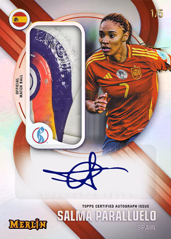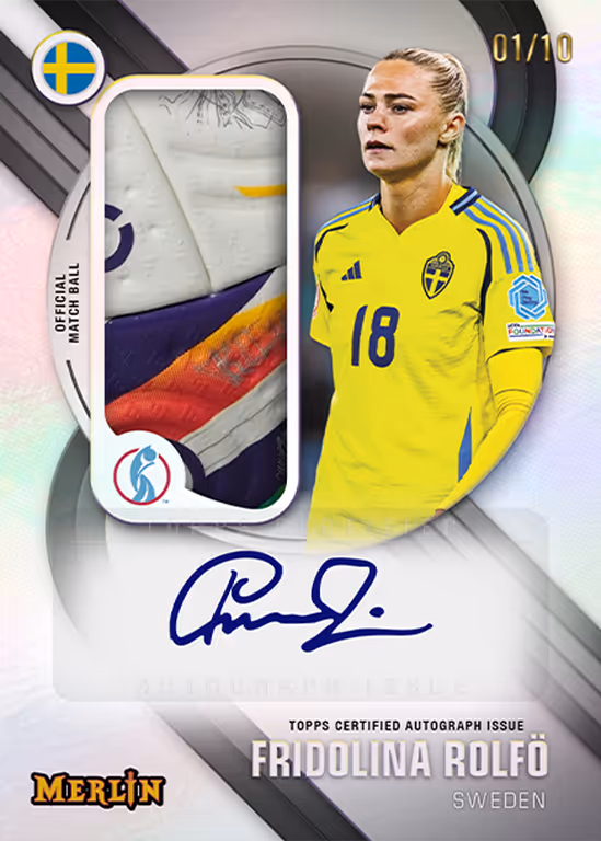 Peu après le début du Championnat d’Europe féminin en Suisse, Topps sort sous la marque Merlin une collection officielle de Cards dédiée au tournoi. Dans les boîtes des 2025 TOPPS Merlin UEFA Women’s Euro Soccer Cards, les collectionneurs trouveront 1 carte autographe et 3 parallèles numérotées.
