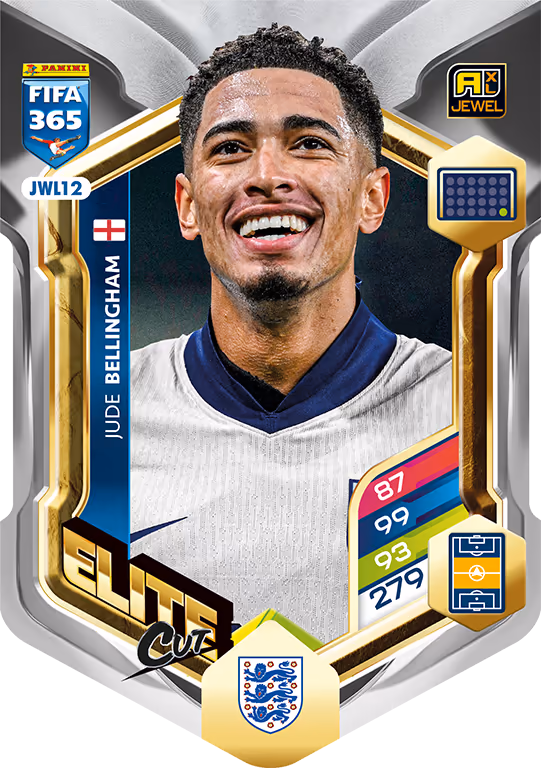 La catégorie Jewel fait aussi son retour et apporte aux collectionneurs des Elite Cut Cards visuellement marquantes en forme de blason, avec 18 des meilleurs joueurs que le football international puisse offrir.