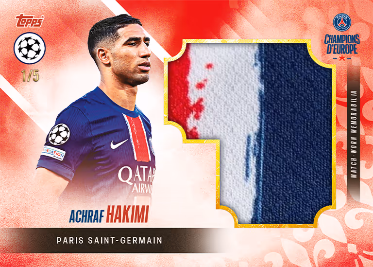 I collezionisti più fortunati potranno trovare nelle loro box carte relic match-worn di 14 giocatori della rosa finale, tra cui Bradley Barcola, Vitinha, Nuno Mendes e i marcatori della finale Senny Mayulu e Achraf Hakimi.