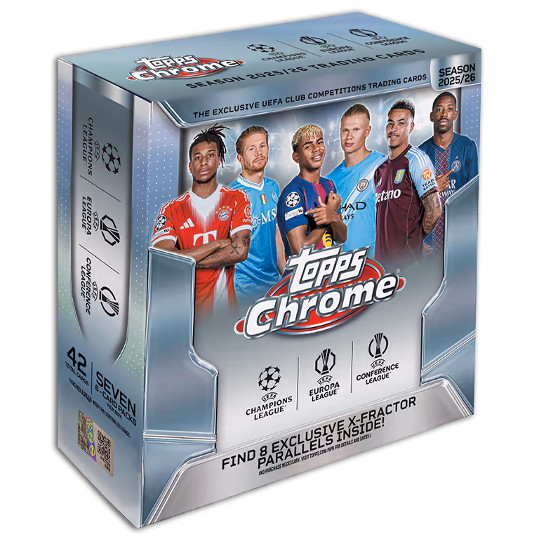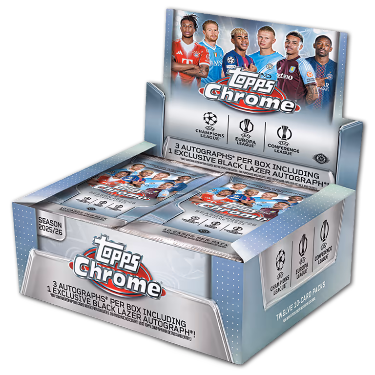 Le 2025-26 TOPPS Chrome UEFA Club Competitions Soccer Cards rappresentano la pubblicazione più ampia di sempre di Topps dedicata alle competizioni per club europee. I collezionisti possono aspettarsi una gamma di prodotti significativamente più ampia rispetto agli anni precedenti.