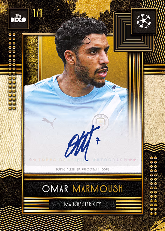 Nelle box Topps UEFA Club Competitions Deco 2025/26 si possono trovare Autograph Cards di oltre 170 giocatori diversi. Oltre alla versione semplice, i collezionisti troveranno anche Dual e Triple Autograph Cards.