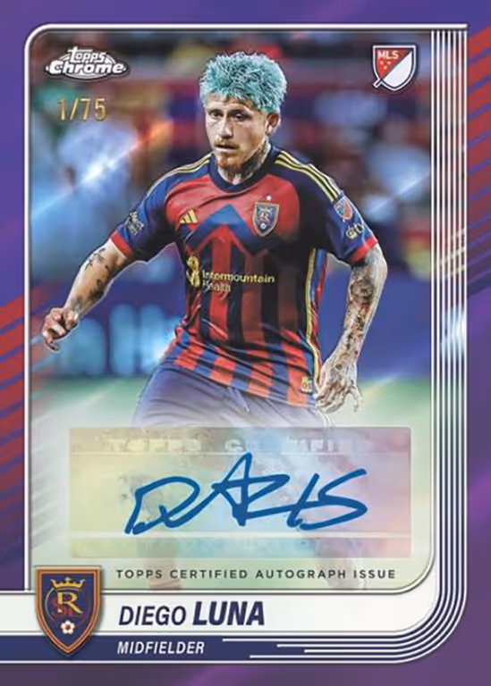 Con le 2025 TOPPS Chrome Major League Soccer Cards, Topps accompagna la lega professionistica nordamericana MLS in una nuova stagione. I collezionisti possono aspettarsi 2 carte autografate e una bustina speciale bonus per il 30º anniversario della lega in ogni Hobby Box.