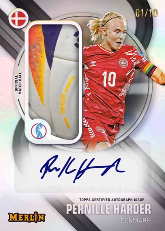 Poco dopo l’inizio del Campionato Europeo femminile in Svizzera, Topps lancia con il marchio Merlin una collezione ufficiale di Cards dedicate al torneo. Nelle box delle 2025 TOPPS Merlin UEFA Women’s Euro Soccer Cards, i collezionisti troveranno 1 carta autografa e 3 parallele numerate.