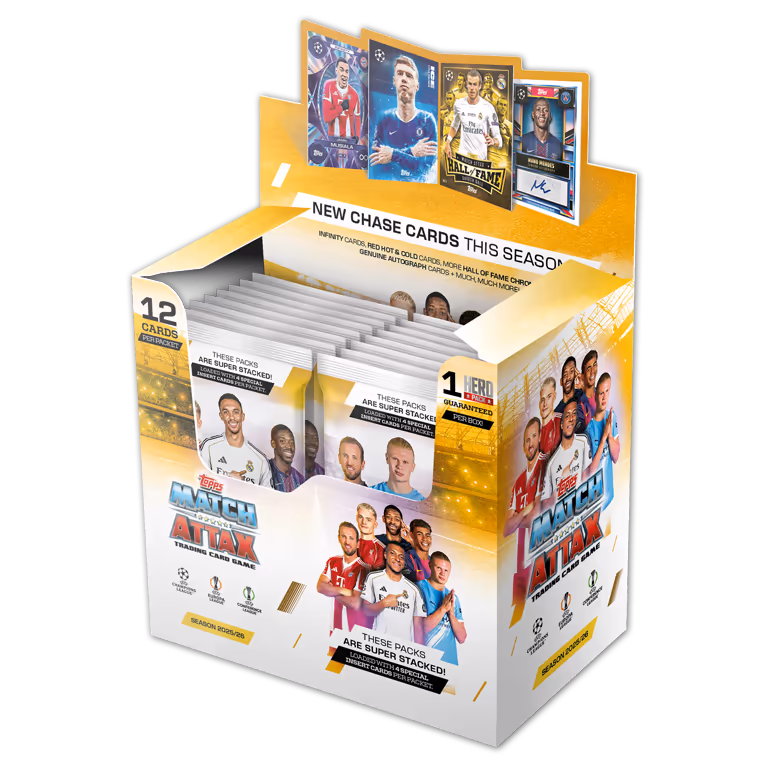Le Match Attax Cards delle competizioni europee per club danno il via a una nuova stagione e mettono al centro dell’esperienza di collezionismo la caccia alle carte più rare. Anche quest’anno, con un po’ di fortuna, è possibile trovare una Relic Card o una Autograph Card nei prodotti della collezione TOPPS UEFA Club Competitions Match Attax 2025/26 Trading Card Game.