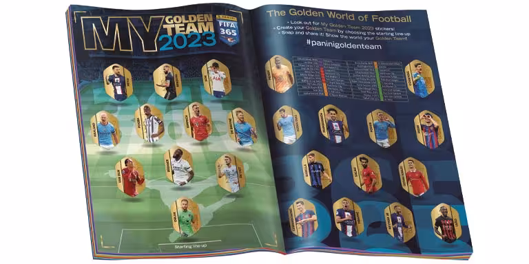 Neu in der diesjährigen Kollektion ist der Bereich My Golden Team 2023, für den 12 (auf der Rückseite nicht mit Nummern versehene) Form-Sticker mit insgesamt 24 Spielern zur Verfügung stehen, aus denen sich jeder Sammler seine bevorzugte Elf zusammenstellen und einkleben kann.