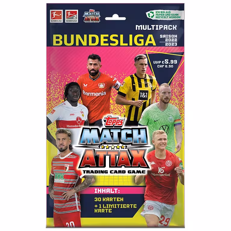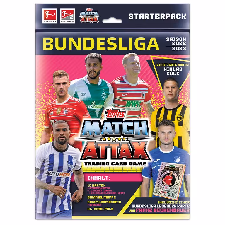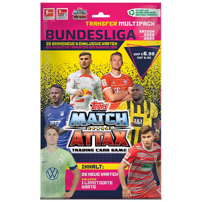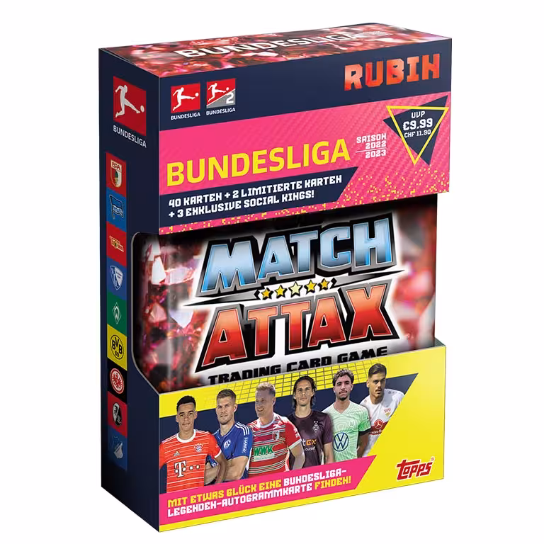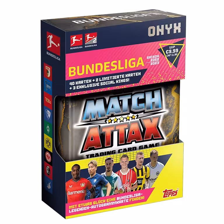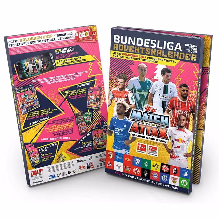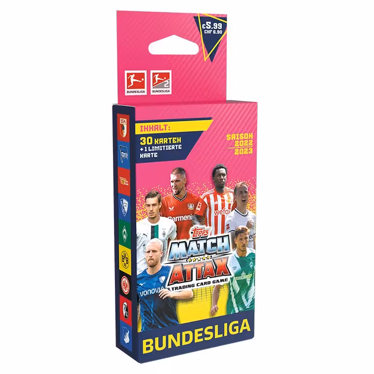 Knapp acht Wochen nach Start der neuen Bundesliga Saison, kommt mit den TOPPS Bundesliga Match Attax 2022/23 Trading Cards das erste offizielle Sammelwerk zu den beiden höchsten deutschen Spielkassen in den Handel. Rund 500 verschiedenen Cards lassen sich in den Produkten der Kollektion finden, die durch Limited Editions, sowie seltene Autograph und Relic Cards ergänzt werden.