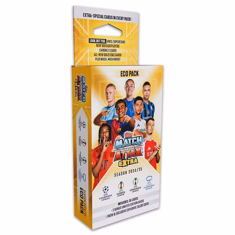 Ergänzt werden die Squad Updates durch die für die Extra Kollektion typischen Away Kits und die Manager Cards, mit den wichtigsten Trainerpersönlichkeiten aus den europäischen Klubwettbewerben. Mit den UWCL Base Cards bringt Topps 45 Spielerinnen aus der UEFA Women’s Champions League in die Kollektion, nachdem der vierte europäische Klubwettbewerb in der Match Attax Hauptkollektion aus dem Herbst erst im fünften Update Multipack erstmals Berücksichtigung fand. Auch wieder mit dabei sind die Finalplakate aller 4 Wettbewerbe und die jeweiligen offiziellen Spielbälle. Neu innerhalb der Base Cards ist die Defensive Rock Kategorie, mit einigen der stärksten Defensivspieler der auf der europäischen Bühne aktiven Clubs.